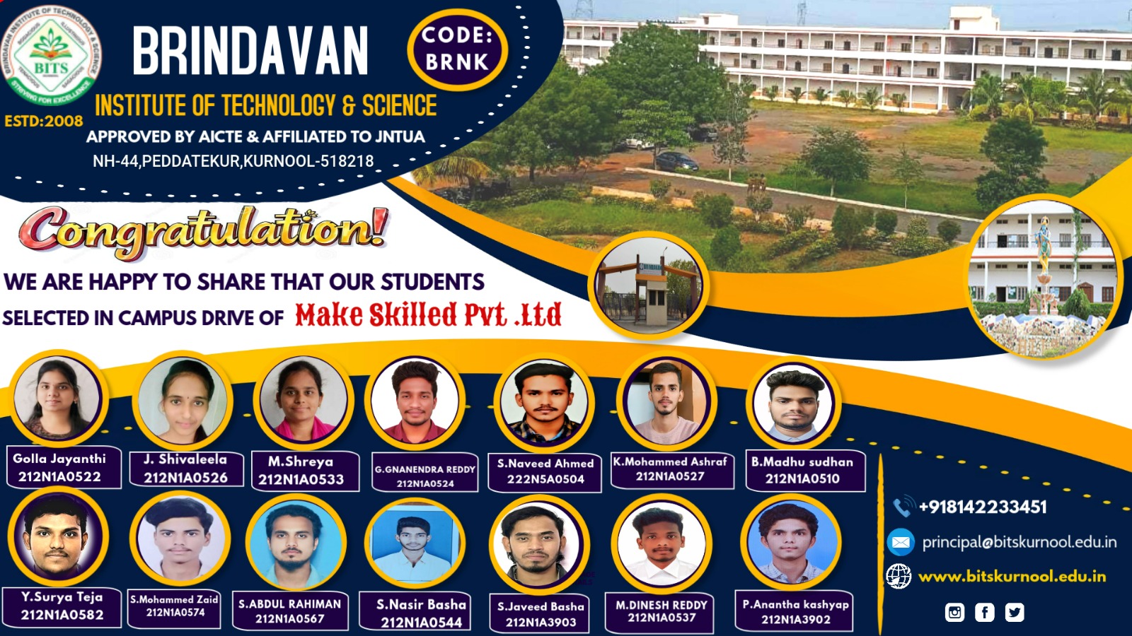 For this academic year the total number of students recruited in our college were one Hundred and fifty seven (157).Our students got placed by top companies like TechMahindra, Surya tech solutions, Karvy, CMS IT services and Aero Design.